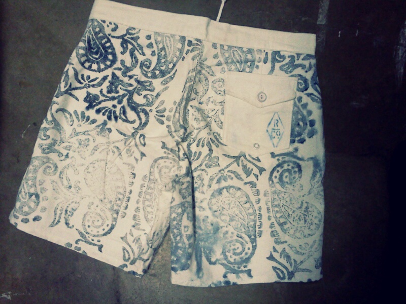 Within the case I found my first pair of canvas Board Shorts that I built for a runway show I participated in a few years back while still living up in The Great Pacific Northwest. It uses canvas that I hand block printed from a block that I carved.